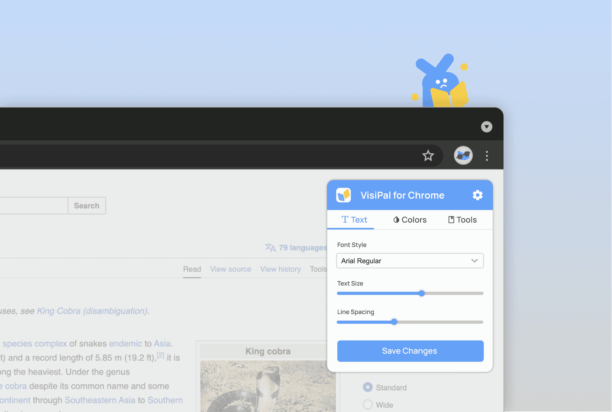 Whether navigating a history textbook chapter or researching for a science project, students can adjust their settings conveniently with the VisiPal widget.